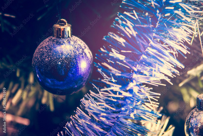 New Year picture postcard. Balls on the background of the Christmas tree. New Year concept.
