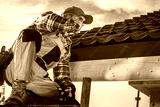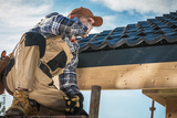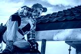 Roof Contractor Talking On Cell Phone.