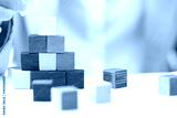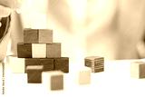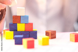 wooden cube block on table background and business concept growth success process and plan growth and increase of positive indicators in his business