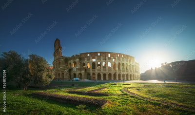 Colosseum in Rome, sunrise time, Italy
