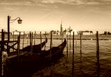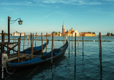Gondolas on Grand Canal and San Giorgio Maggiore church in Venice