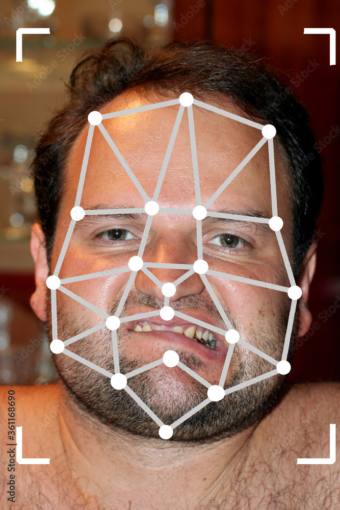 Facial Recognition System concept. The face of an unshaven man. Biometric protection