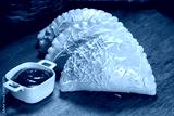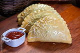 Brazilian snacks, roasted pastel on white background