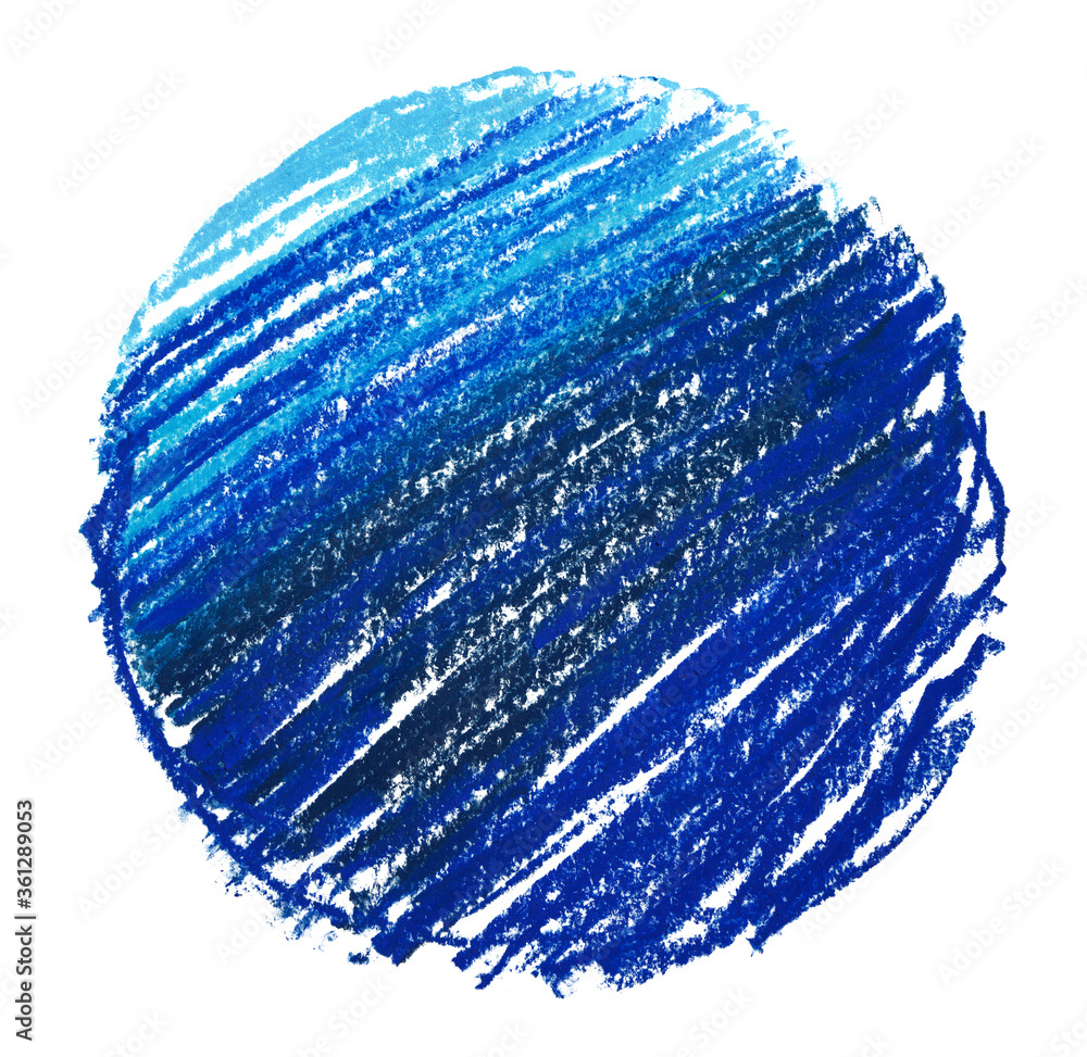 Drawing a circle in crayons blue with stripes of a circle. Pastel oil crayons stroke of lines texture with gradient