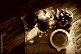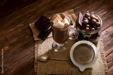 Homemade brown sweet chocolate cocktail on wooden table