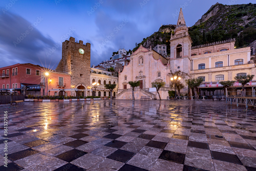 Taormina. The old stone church at dawn.
