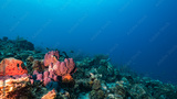Seascape in turquoise water of coral reef in Caribbean Sea / Curacao with fish, coral and sponge