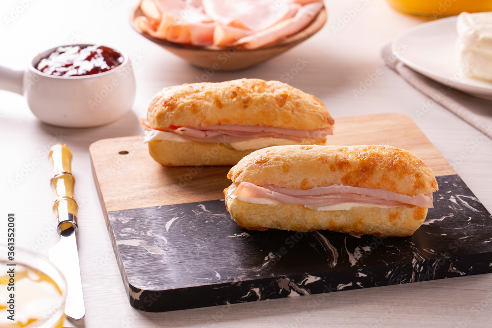 Brazilian cheese buns . Table coffee in the morning with cheese bread.