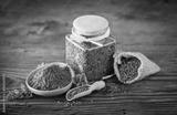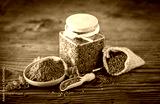 Fresh cumin seeds and powder on the wooden table