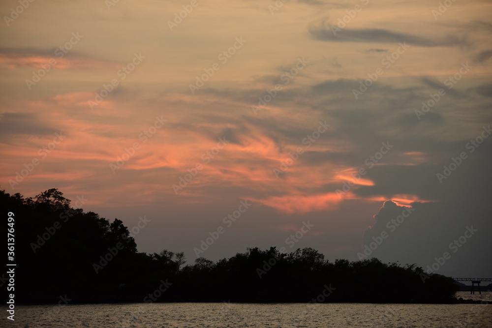 The sunrise view against the golden yellow sky