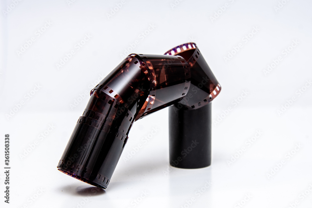 Negative image in Old vintage 35mm format on a white background. thirty millimeter film for the camera