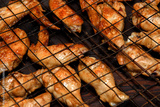 Charcoal fried wings. Fine appetizing fried wings on a grill over coals.