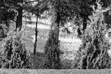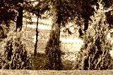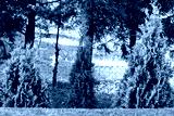 Widok na trzy tuje w zielonym ogrodzie