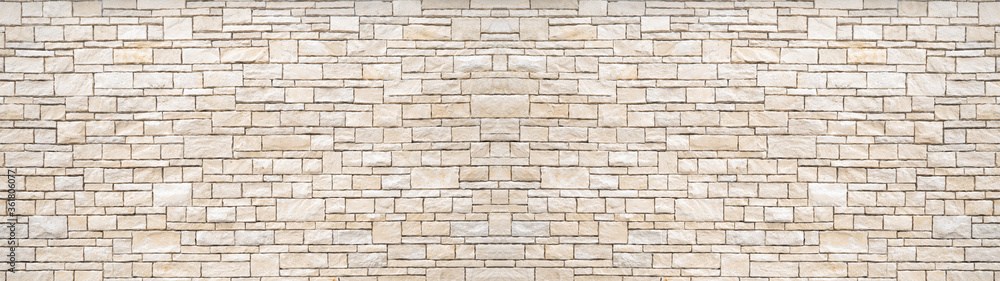 Natural beige white stone brick wall texture background banner panoramic panorama
