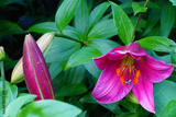 Pink Orienpet lily flower in the summer garden