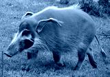 The red river hog also known as the bush pig (but not to be confused with P. larvatus, common name "bushpig"), is a wild member of the pig family living in Africa