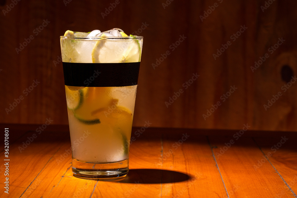Lemon Fruit Caipirinha of Brazil on wooden background