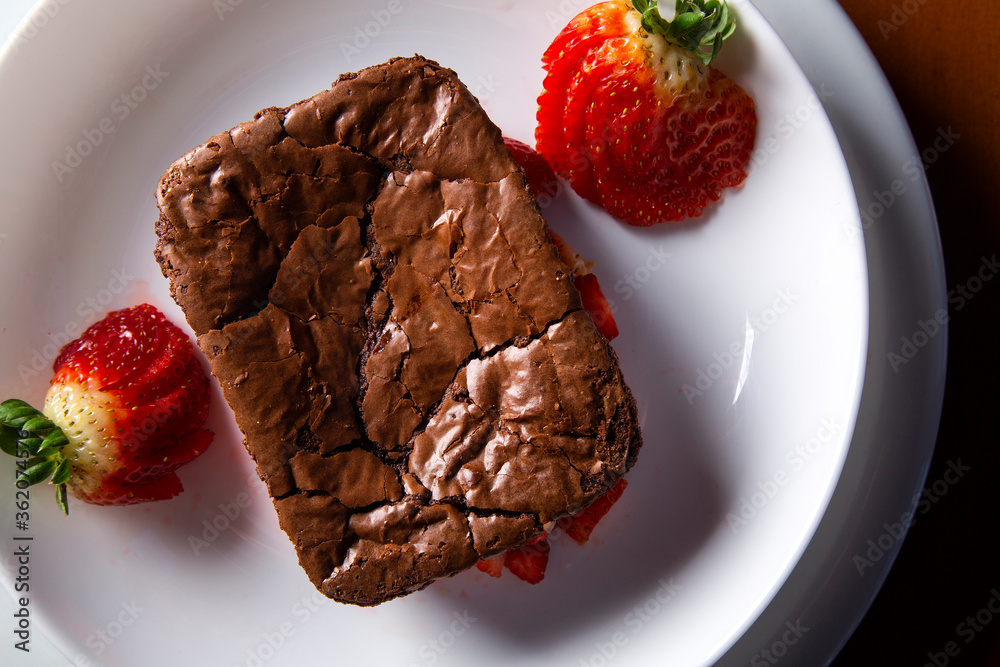 Homemade chocolate brownies with strawberry