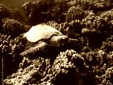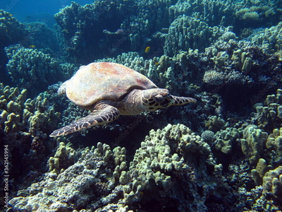 Sea turtles. Large reef turtle Bissa on the reefs of the Red Sea.