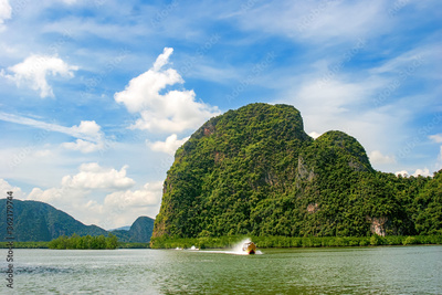 Travel vacation background - Tropical island with resorts - Phi-Phi island, Krabi Province, Thailand