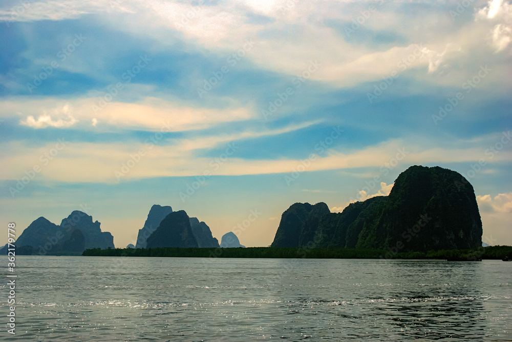 Travel vacation background - Tropical island with resorts - Phi-Phi island, Krabi Province, Thailand