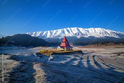 Lord Shiva temple near Himalayan Mountains in Gulmarg