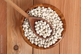 Navy beans in wooden bowl