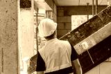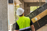construction worker on building site, man in reflective vest and helmet