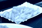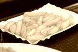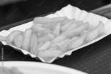 Fried French fries, served on a cardboard tray