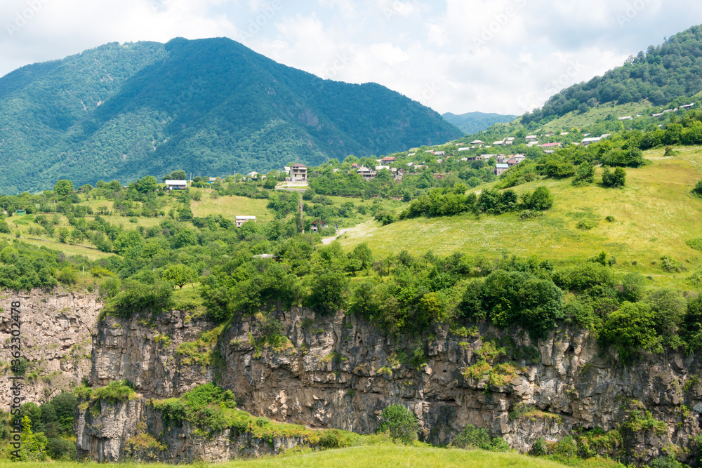 Hiking trail leading from Haghpat Monastery to Sanahin Monastery. a famous landscape in Akner village, Alaverdi, Lori, Armenia.