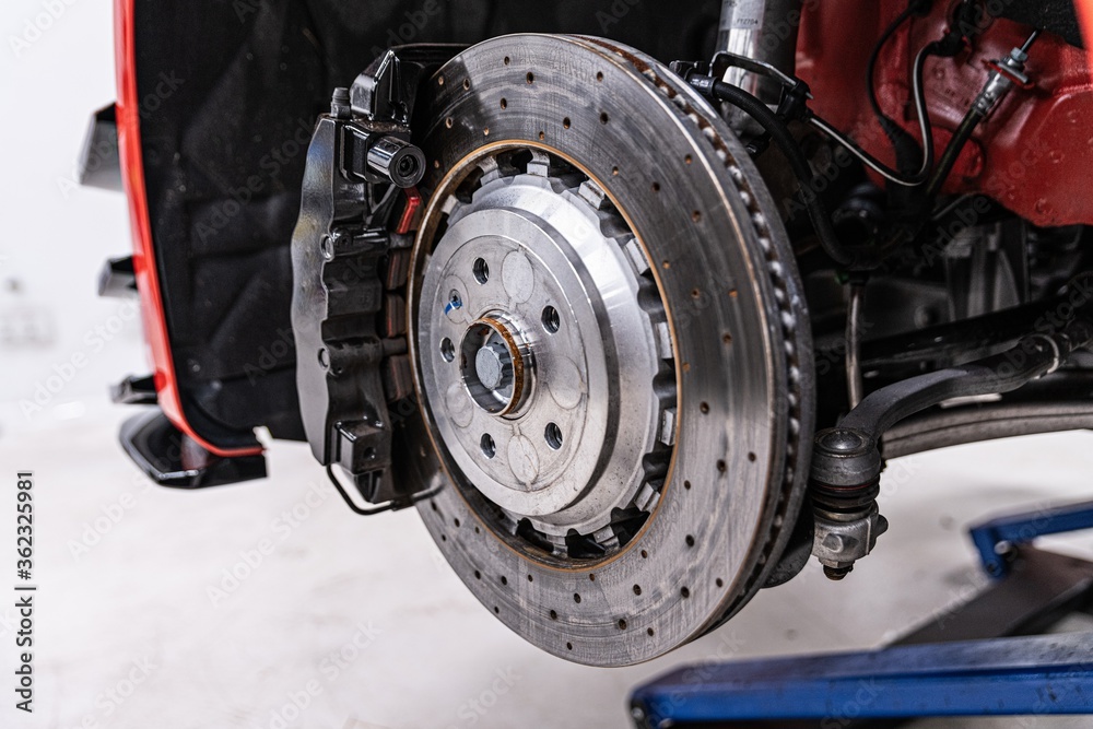 Modern sports car braking system and suspension.