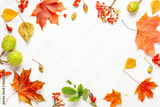 Autumn composition made of leaves, berries on white background. Autumn concept for Thanksgiving day or for other holidays. Flat lay, copy space.