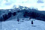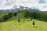Hiking trail leading from Mestia to Koruldi lakes. a famous landscape in Mestia, Samegrelo-Zemo Svaneti, Georgia.