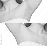 Girl underarm. White woman armpit. Before and after epilation collage. Wax depilation result concept. Laser hair removal. sugaring spa procedure. Health care home routine. IPL treatment. Isolated