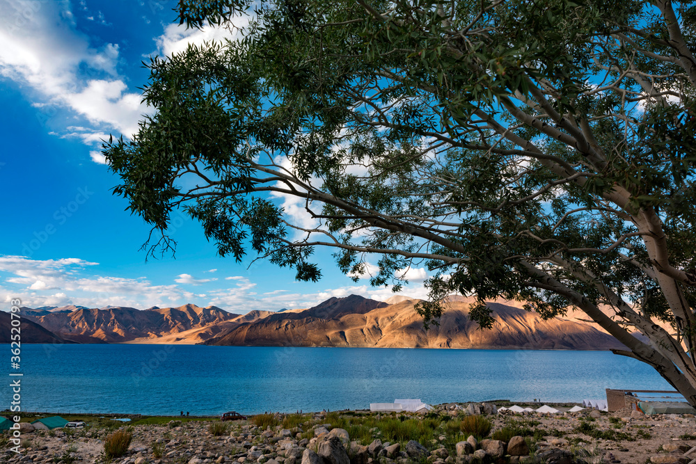 Mountains and Pangong tso (Lake). It is huge and highest lake in Ladakh.