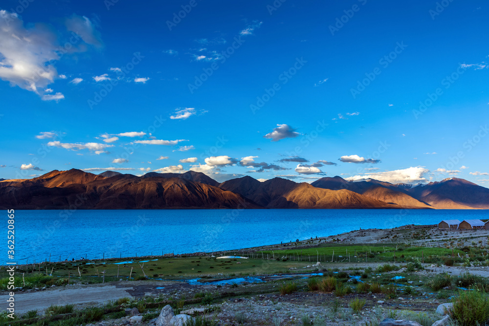 Mountains and Pangong tso (Lake). It is huge and highest lake in Ladakh.
