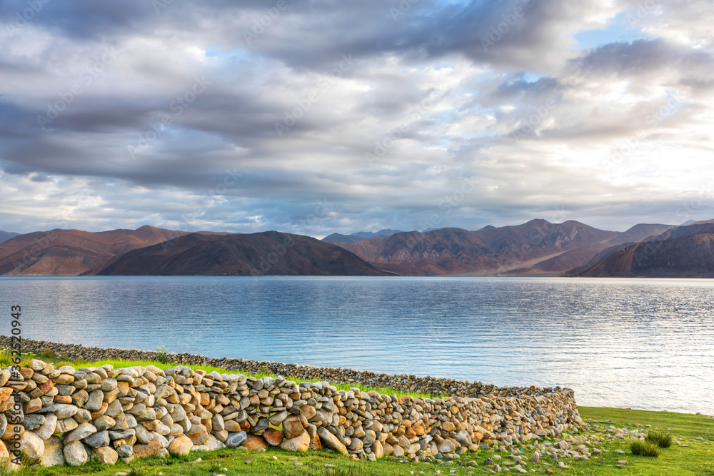 Mountains and Pangong tso (Lake). It is huge and highest lake in Ladakh.