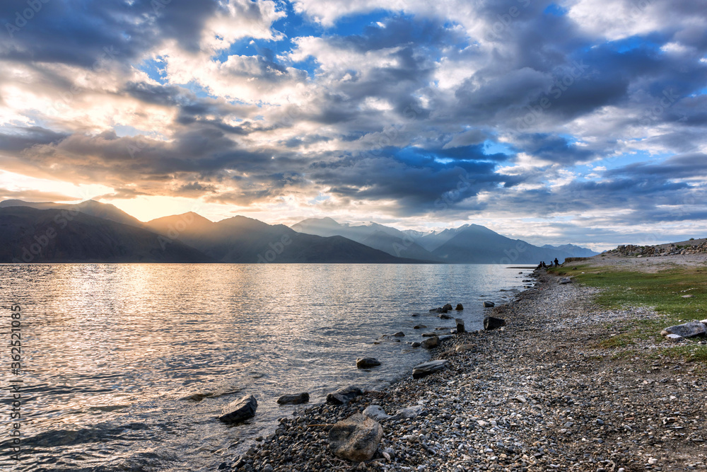 Mountains and Pangong tso (Lake). It is huge and highest lake in Ladakh.