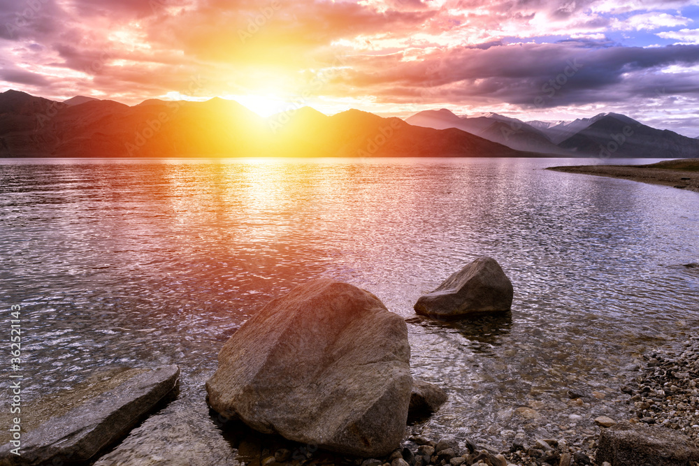 Mountains and Pangong tso (Lake). It is huge and highest lake in Ladakh.