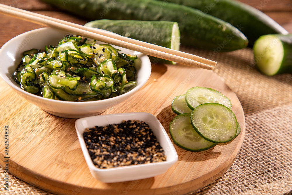 Sunomono - Japanese Cucumber Salad with sesame seeds.