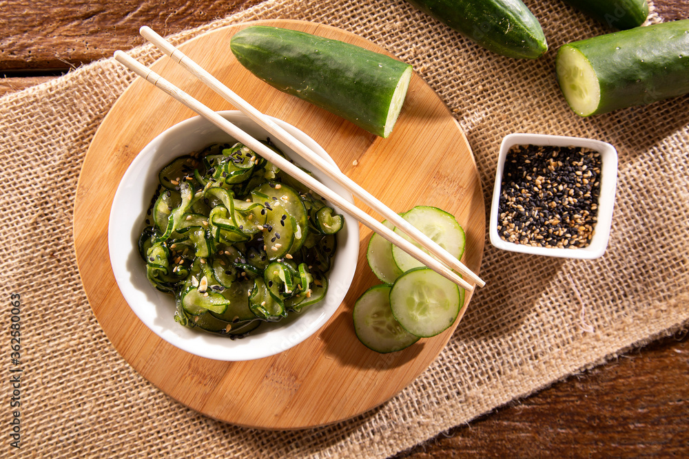Sunomono - Japanese Cucumber Salad with sesame seeds.