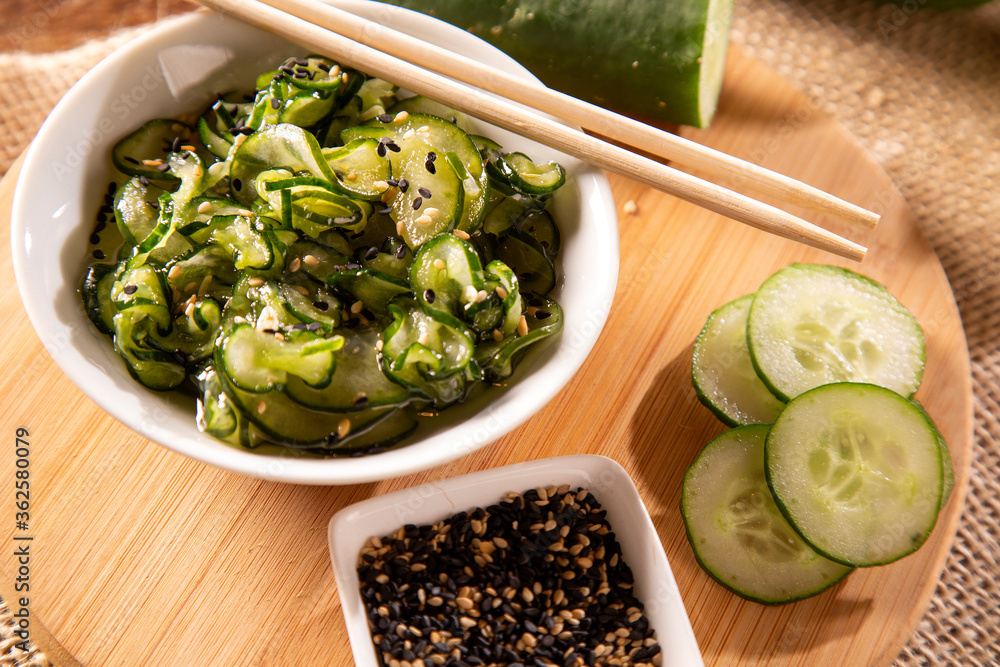 Sunomono - Japanese Cucumber Salad with sesame seeds.