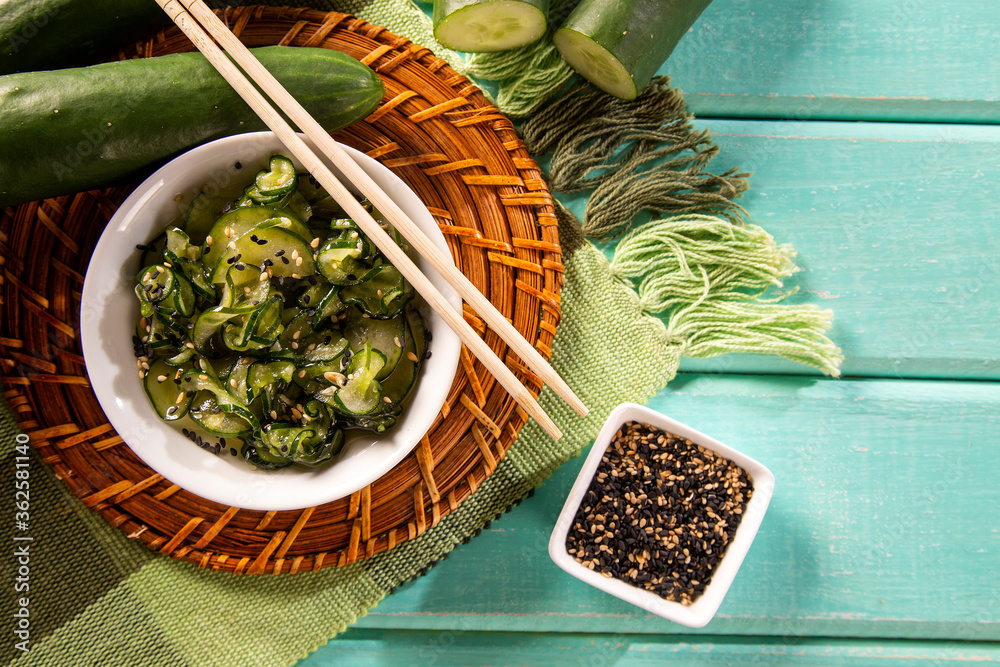 Sunomono - Japanese Cucumber Salad with sesame seeds.