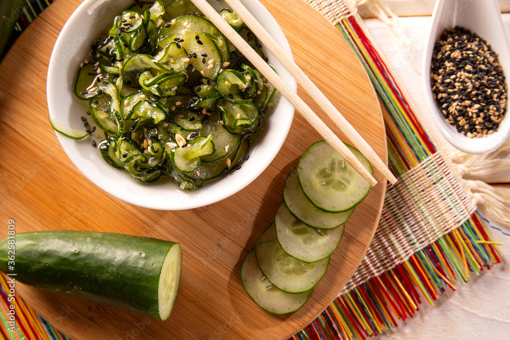 Sunomono - Japanese Cucumber Salad with sesame seeds.