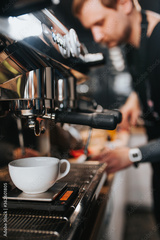 Barista professionally makes aromatic coffee in many ways - the art of brewing