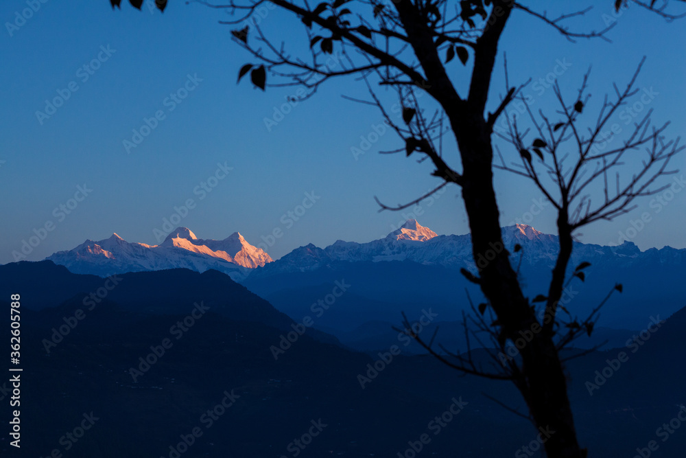 Beautiful landscape of Himalayan snow mountains from Chaukori, Uttarakhand, India