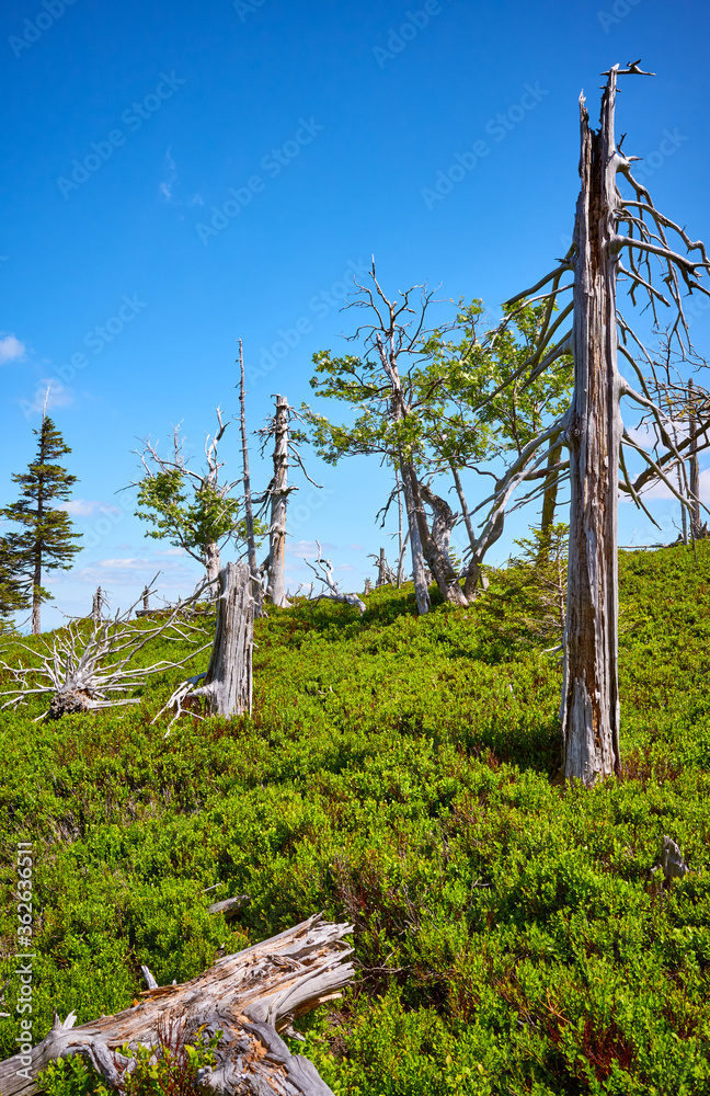 Dead trees in Karkonosze National Park, Poland.
