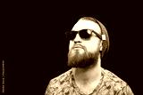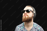 Bearded man in sunglasses isolated on black background