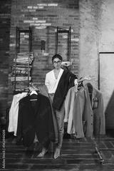 clothing, fashion, style and people concept - happy woman choosing clothes at home wardrobe