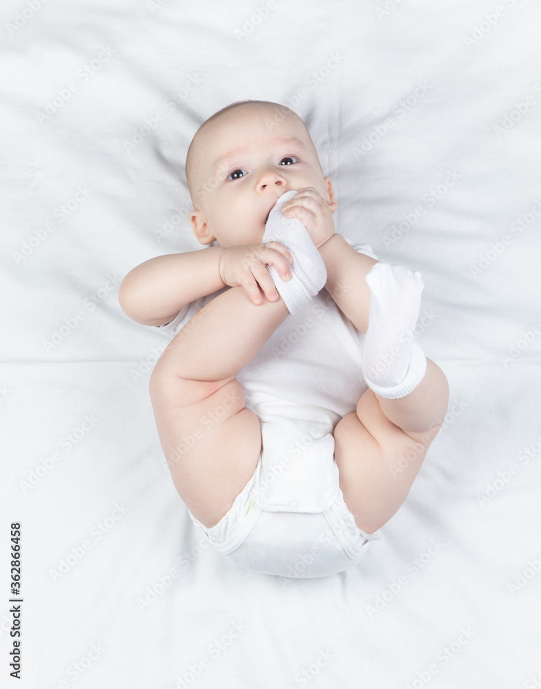 Photo a six-month-old baby boy on a white background